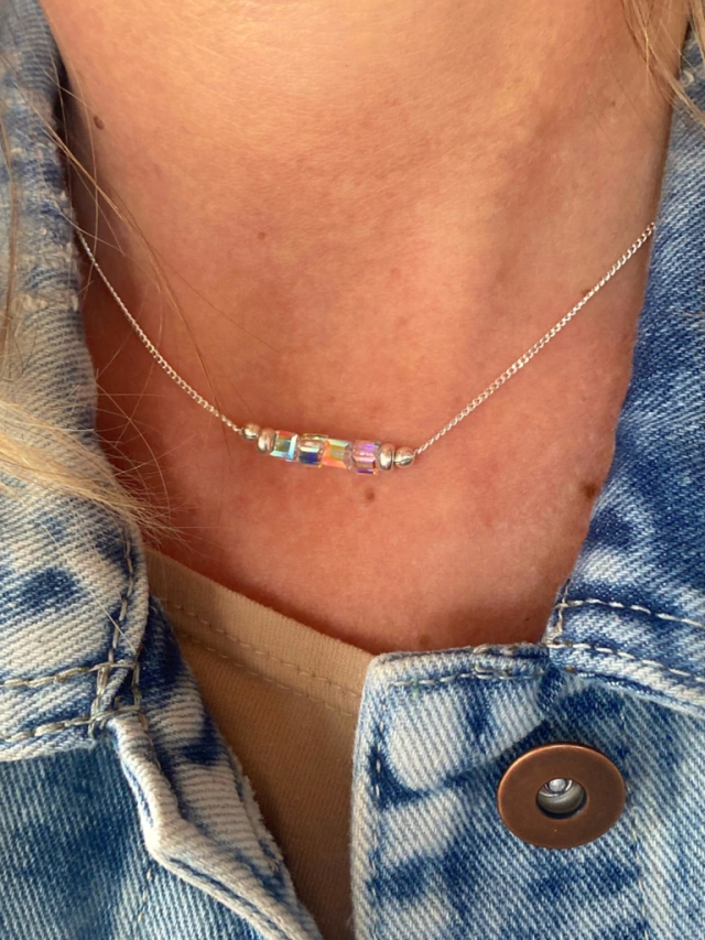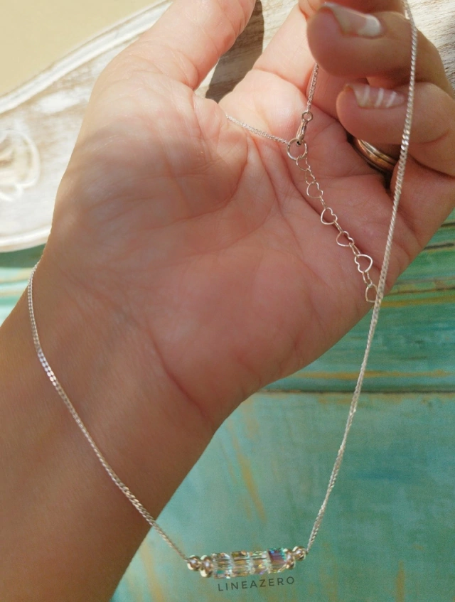 cadena de plata y cubos de cristal