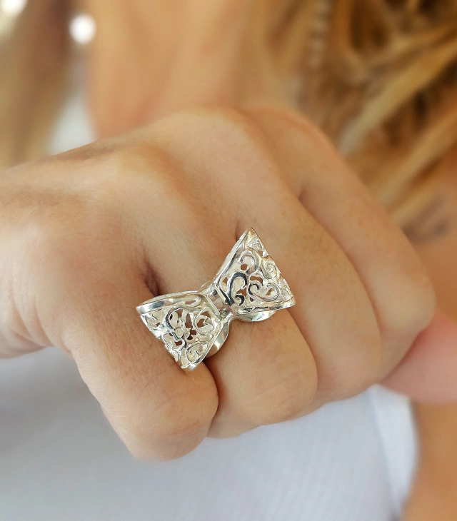 Anillo de plata 925 con detalles arabescos.